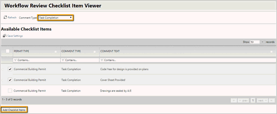Comment Type: Type the first three letters of a comment type and the lookup field will auto populate with a list of choices. The comment type of a checklist item is used for further filtering of checklist items. They have no other purpose other than to allow additional filtering on the checklist item manager.