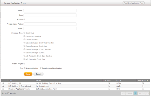 Is Active (checkbox): If checked, the application type will be available for users to select from the application dashboard. If unchecked, users cannot create, edit or copy forms associate with the selected application request type.